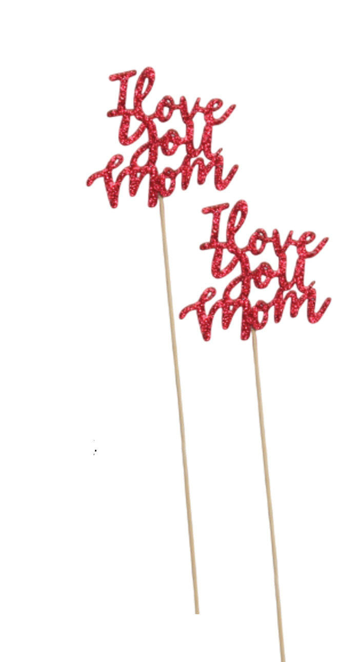 Happy Mother's Day! "I Love You Mom" Mother's Day Picks. 3 1/2" x 3 1/2", total height 18" 12 Units per Pack