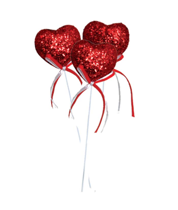 Red Glitter Heart Picks with Red Ribbon (Dozen)