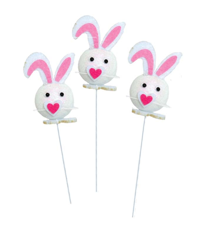 White Bunny Picks (3 pieces) for Easter arrangements