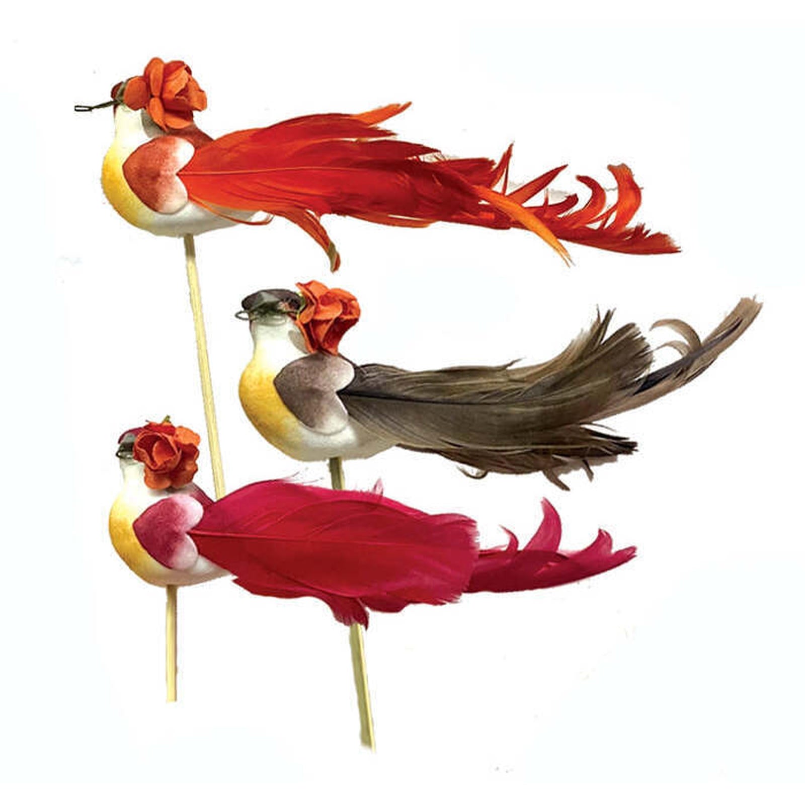 Birds with Curly Tail and Flower 6 pcs