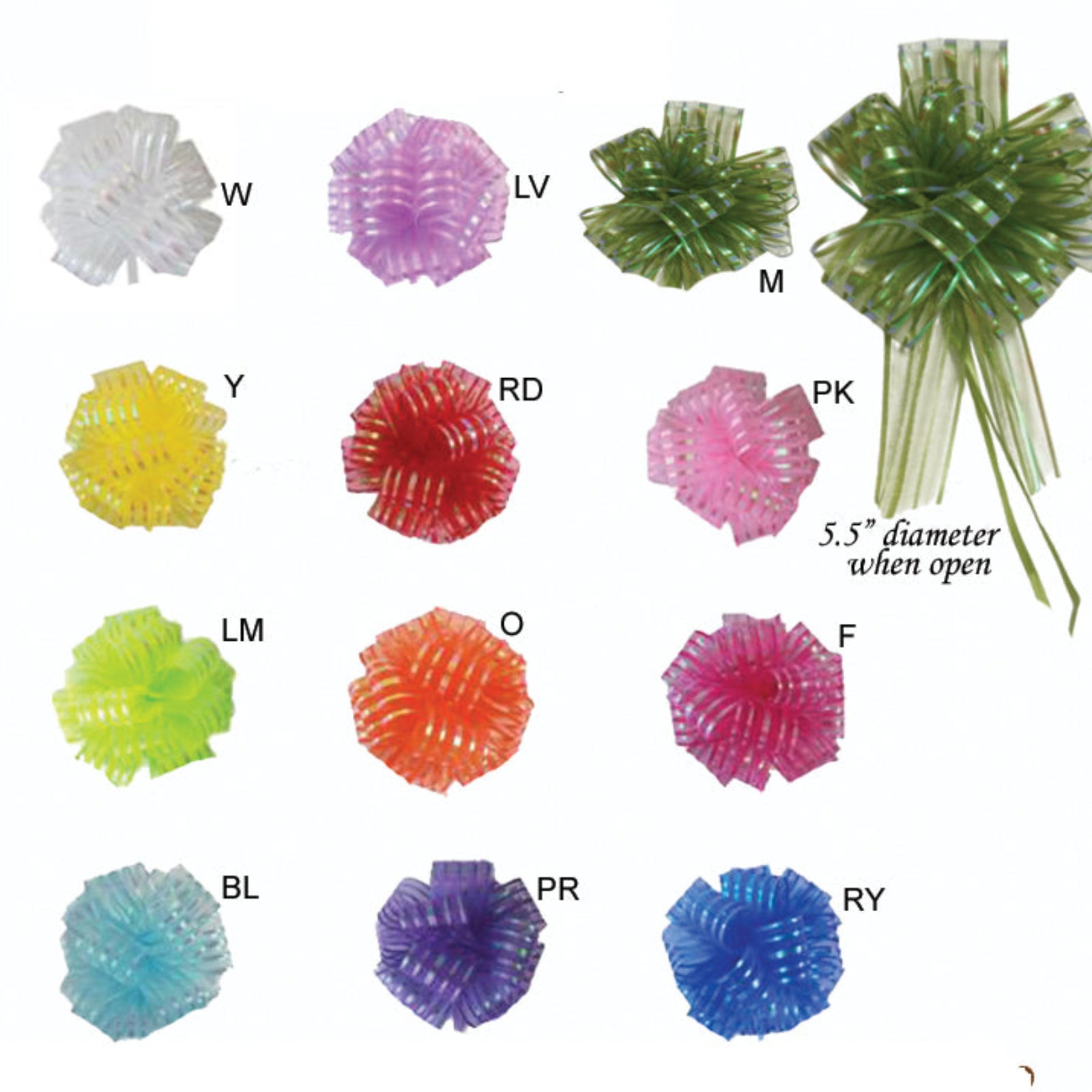 Instant Pull Bows, 5.5" Diameter when open. 20 pieces