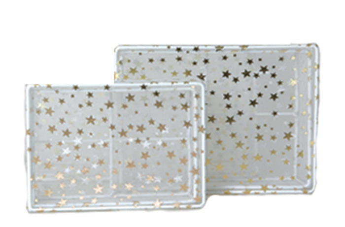 Set of 3 White with Silver Stars Organza Box Lg size 7.25" x 3" H