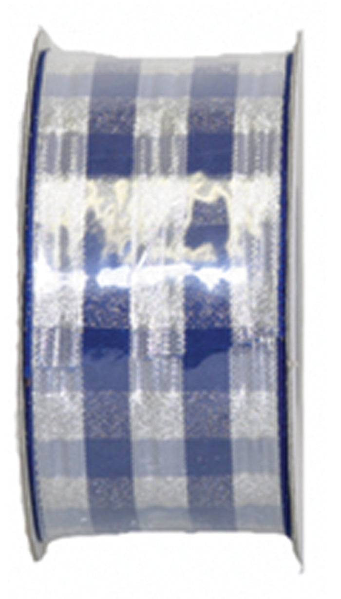 Silver and Blue Plaid Metallic Wired #9 Ribbon 10 yards