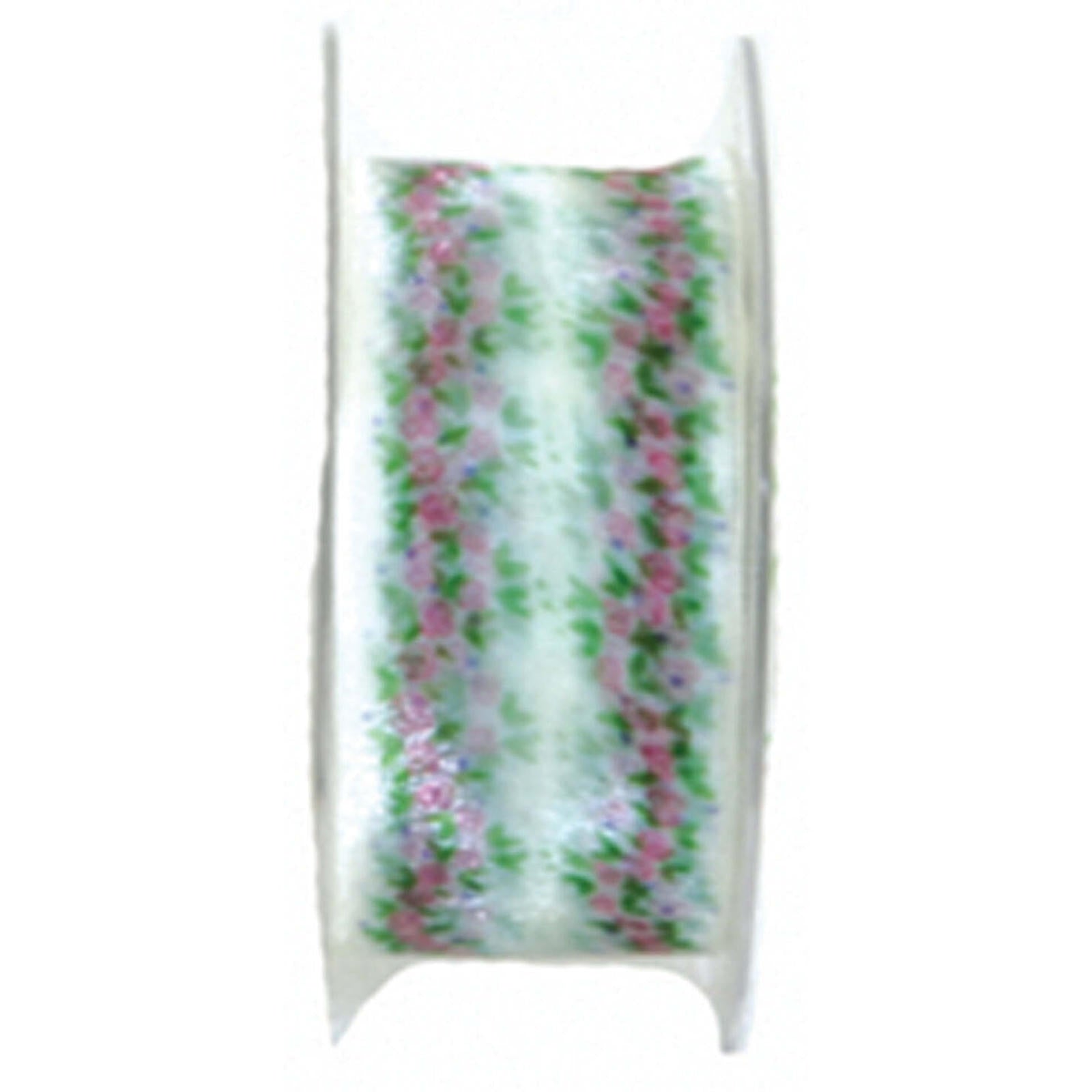White with Purple & Green Flowers #9 Ribbon 25 yards
