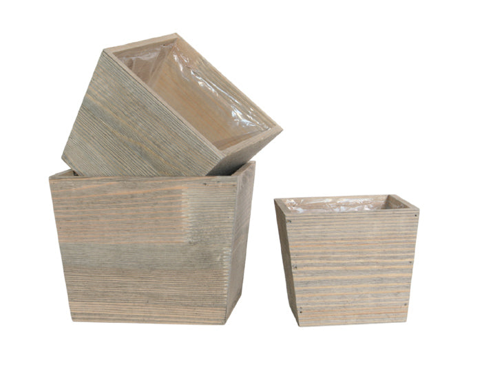 Set of 3 Square Wood Planter Box with plastic liners